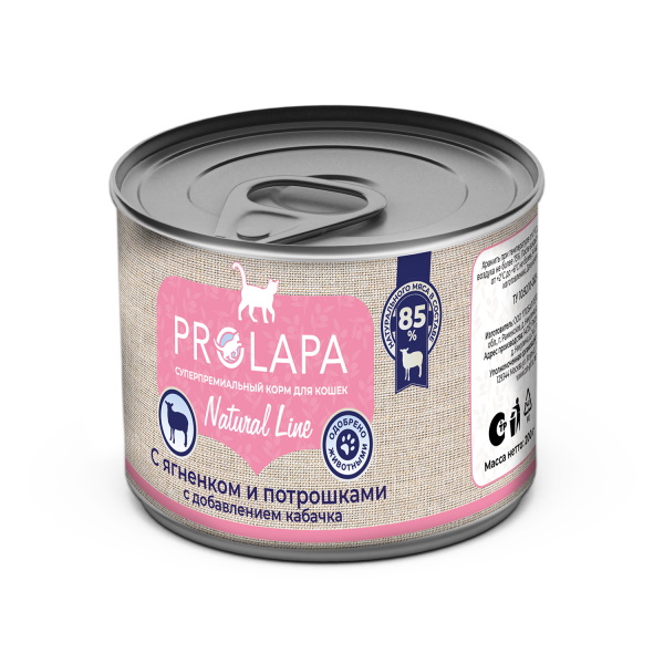 Prolapa Natural Line влажный корм для кошек, с ягненком, потрошками и кабачком (6шт в уп)