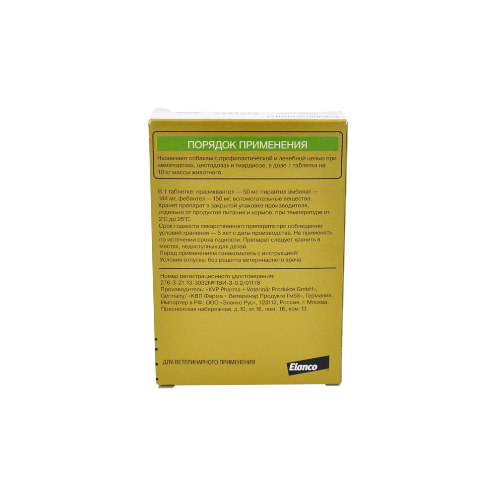 Фебантел и пирантела эмбонат действуют на круглых гельминтов, паразитирующих в кишечнике собак. Они парализуют паразитов, после чего те выводятся из организма животного, что помогает избежать интоксикации продуктами их распада.